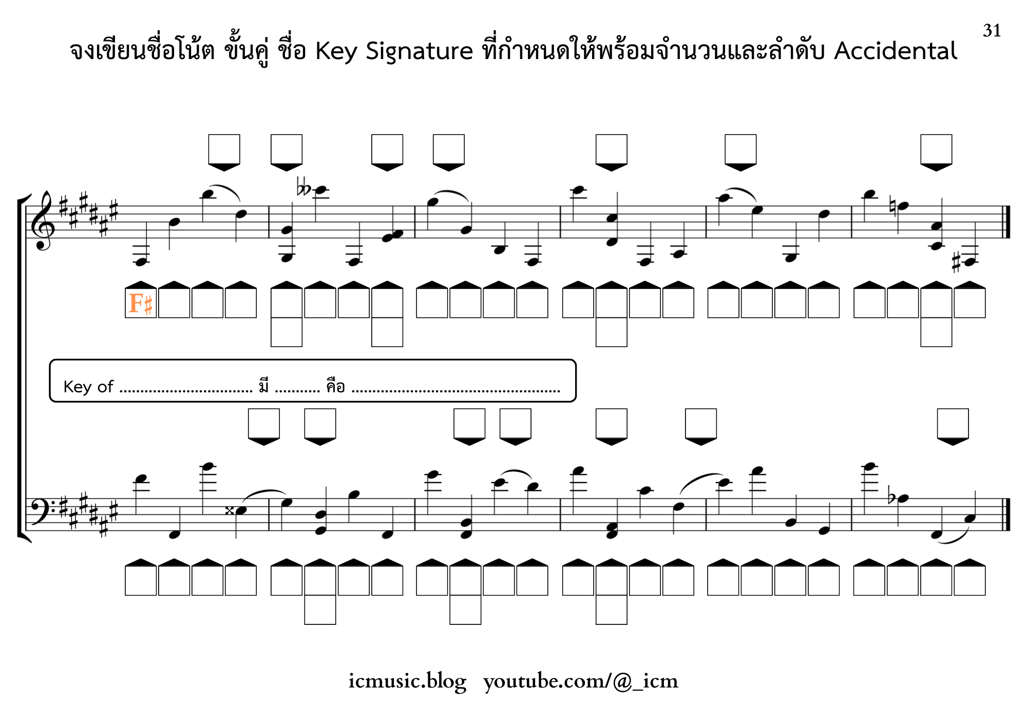– ใช้ Key of F# Major มี 6# คือ F# C# G# D# A# E#