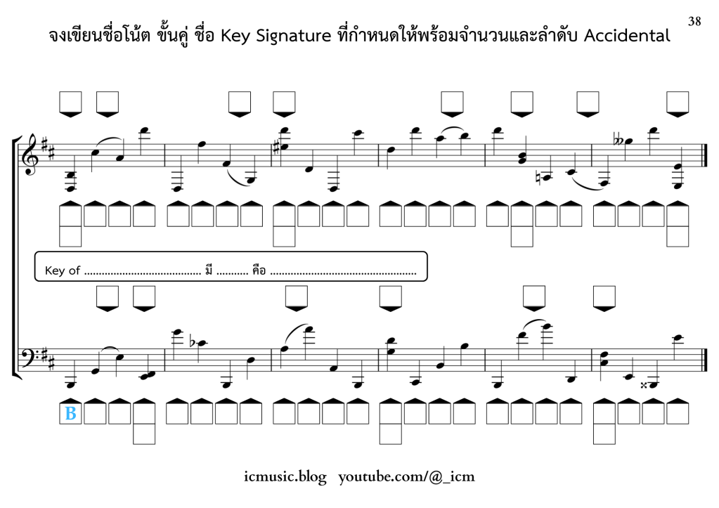 – ใช้ Key of D Major / B Minor มี 2# คือ F# C#