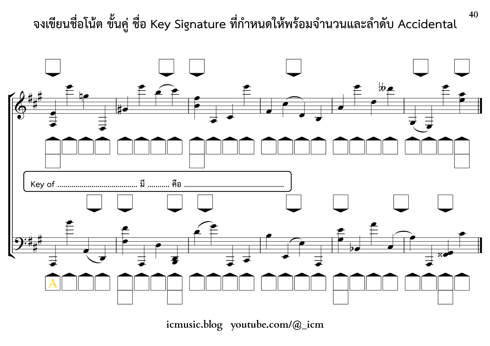 – ใช้ Key of A Major / F# Minor มี 3# คือ F# C# G#